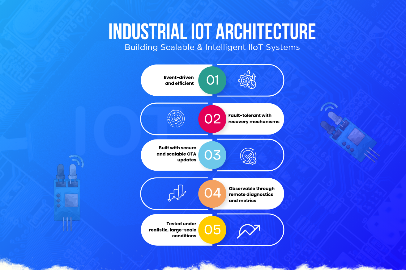A robust Industrial IoT architecture ensures that data flows efficiently across all layers, enabling real-time insights and intelligent automation.